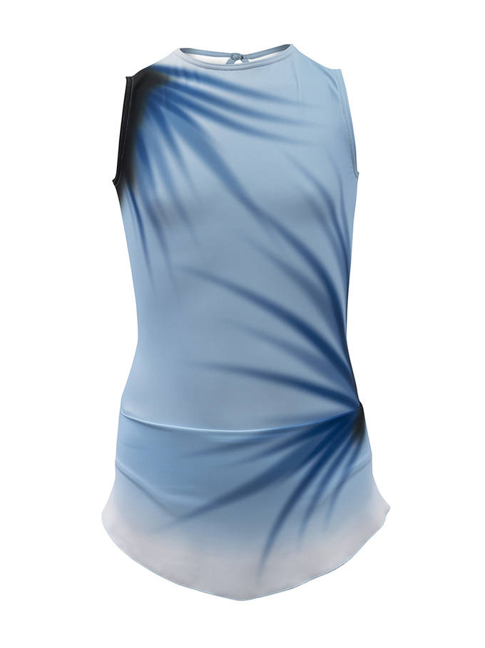 Mallot de patinatge artístic. La faldilla i el cos està confeccionat amb lycra. El mallot porta incorporat la calça, confeccionada amb la mateixa lycra de la faldilla i forrada a les zones íntimes. El mallot es corda per l'esquena amb un clicks.