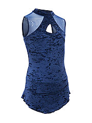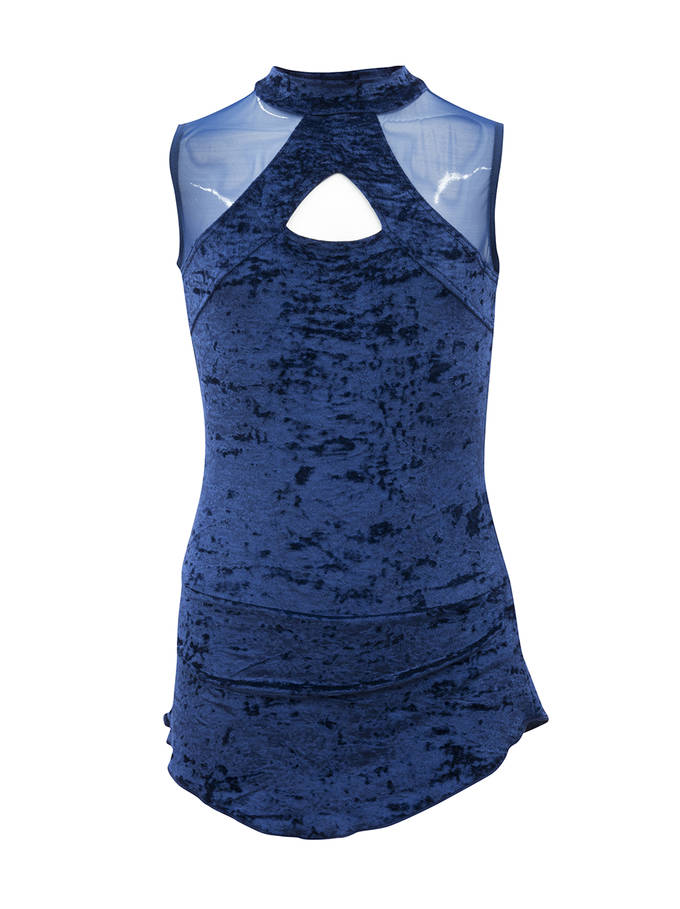 Artistic skating leotards. The skirt with the underwear lined inside incorporated is made with strechable velvet and the body is made with a combination of strechable velvet and see-through fabric. It clasps from behind with one click buttons.